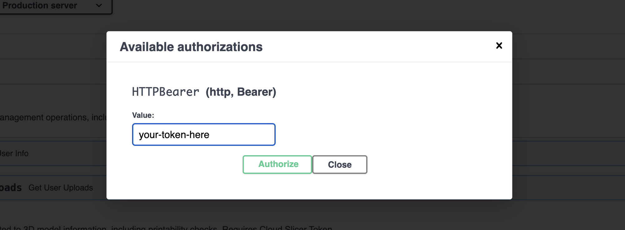 - Navigate to the API playground at api.cloudslicer3d.com/docs