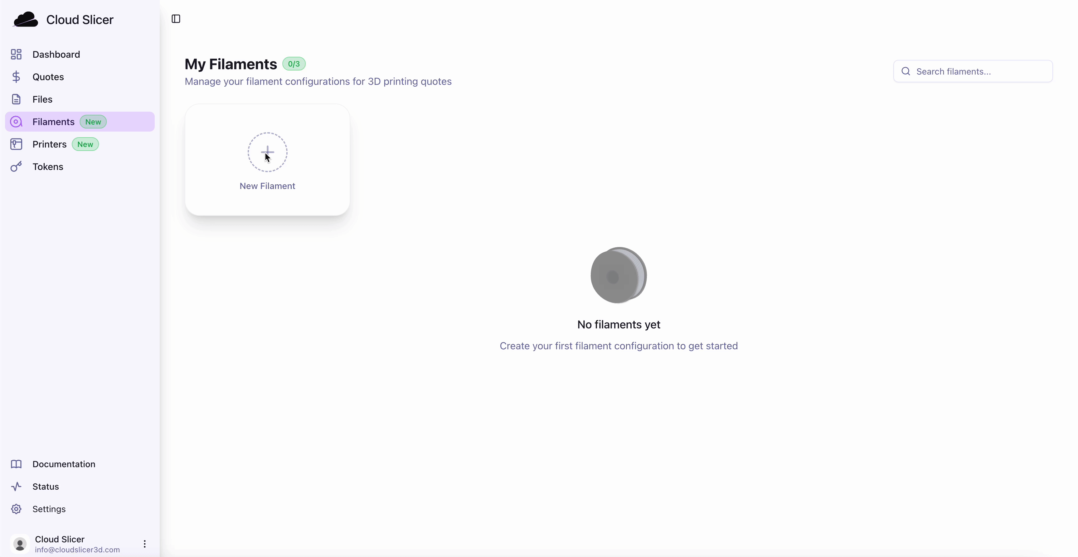 - Visit www.cloudslicer3d.com to sign up for a new account